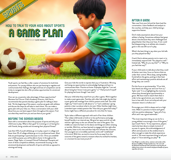 How can we, as parents, take advantage of these opportunities? Montana Surf Soccer Club’s Academy Director, Joel Harris, recommends that parents develop a game plan for talking to their kids. “At the beginning of the season, coaches set goals with athletes and discuss the steps we will take to reach them. You can make a game plan with your kids, too. Have a conversation with your child about how you can best support them throughout the season. Find out what they need from you and use that as your guide.”